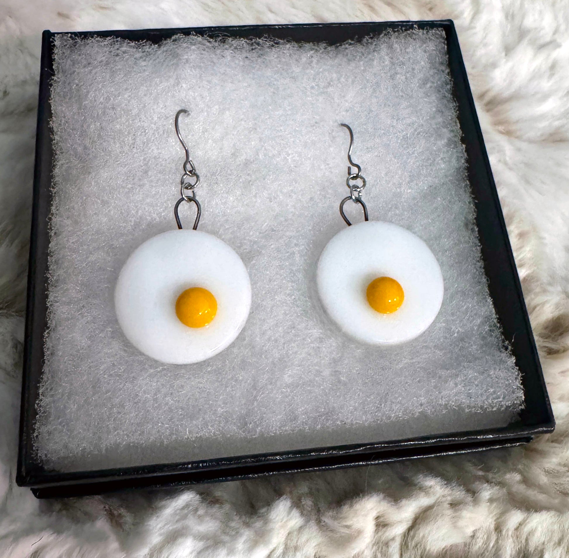 The large perfect egg earrings are ~1.5"in. in diameter. The other pairs are between 0.8"in. to 1"in. in diameter.