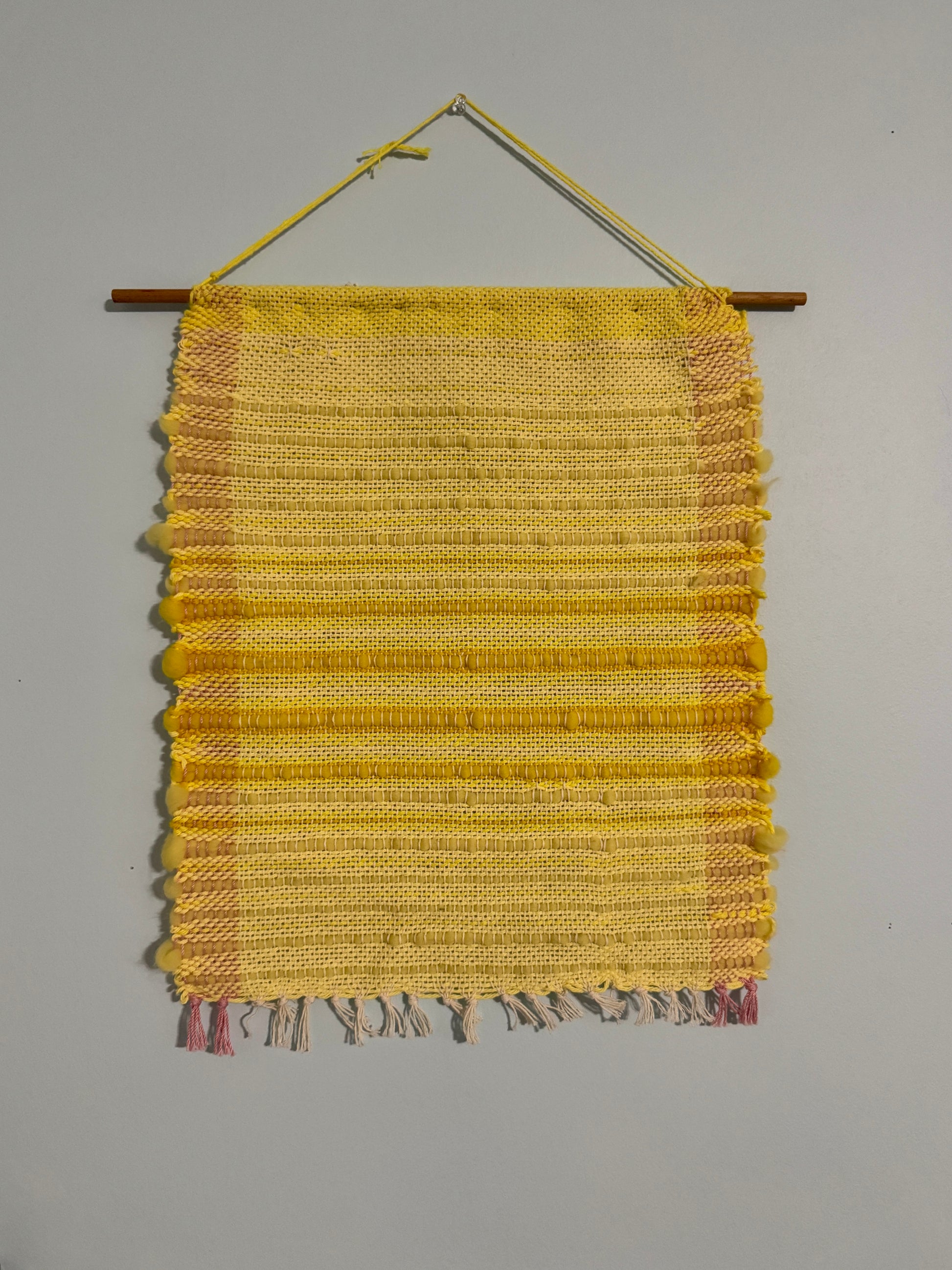 This weaving is made with love, cotton, and wool! No honey was used in the creation of it.