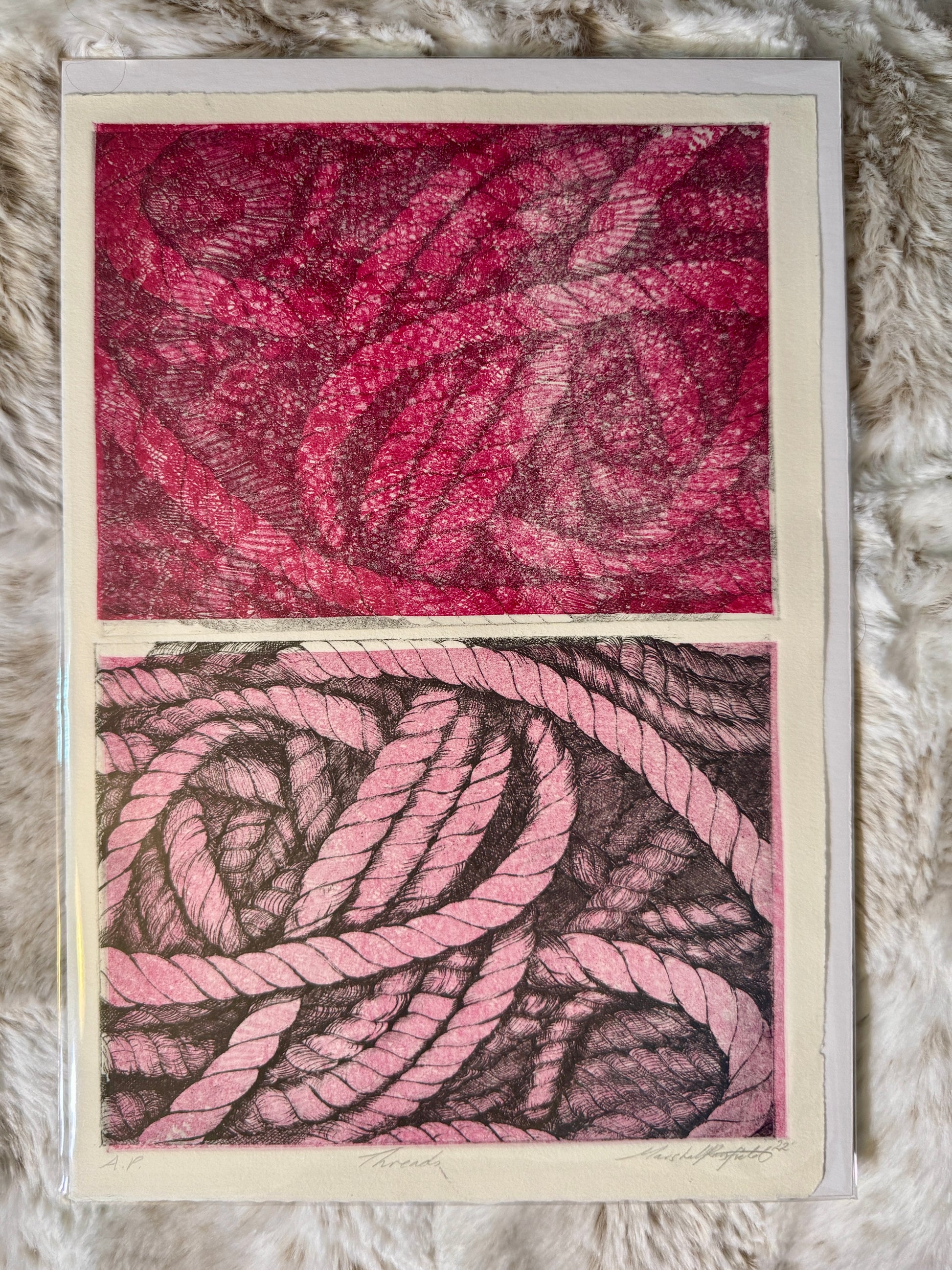 There are only 2 of these prints left! These are incredibly difficult to achieve through intaglio using a hand-etched plate and a soft ground plate etched with acid to achieve the lace design.