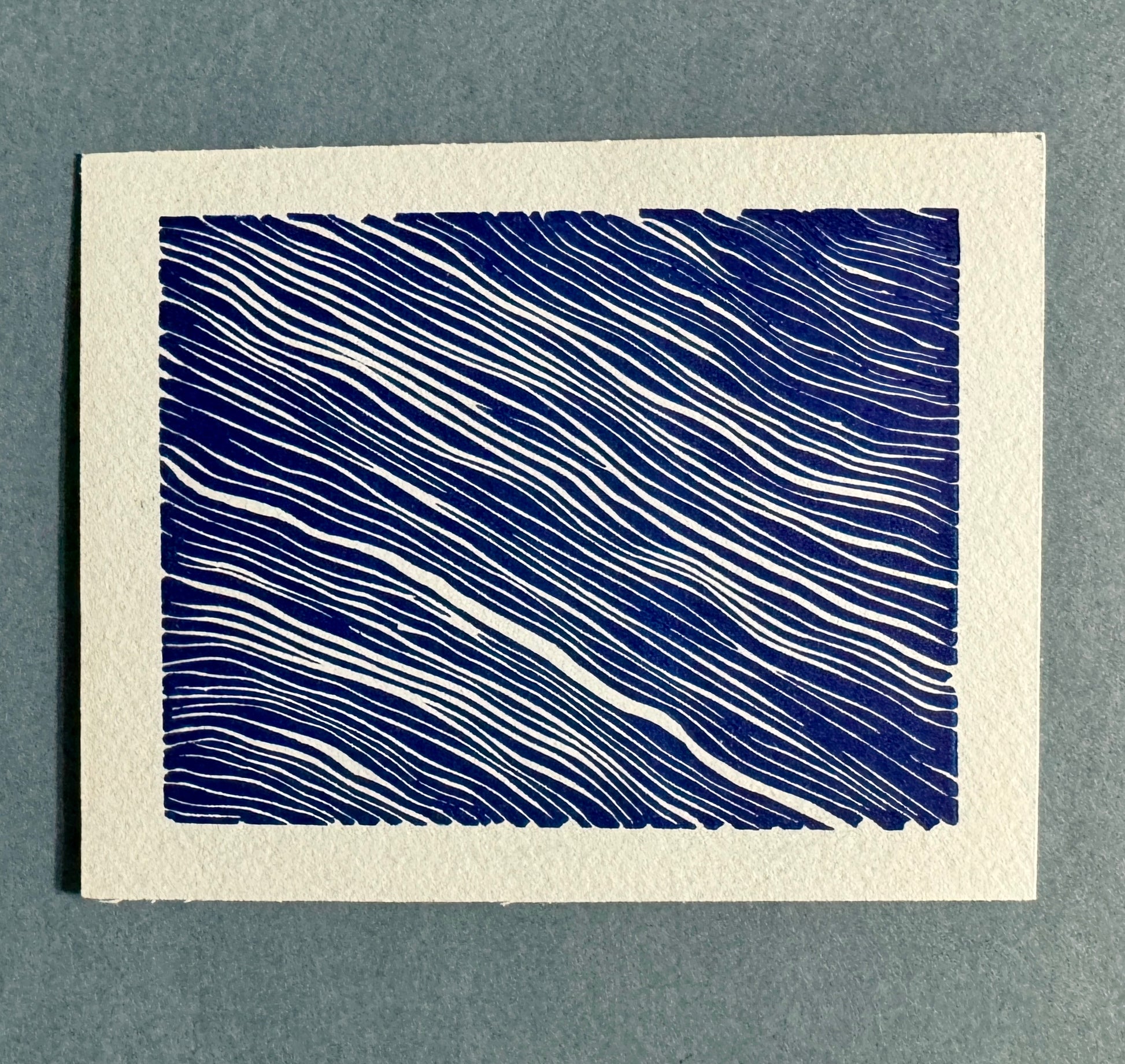 This small lino print was carved and printed by hand in 2024 using Caligo SafeWash inks.